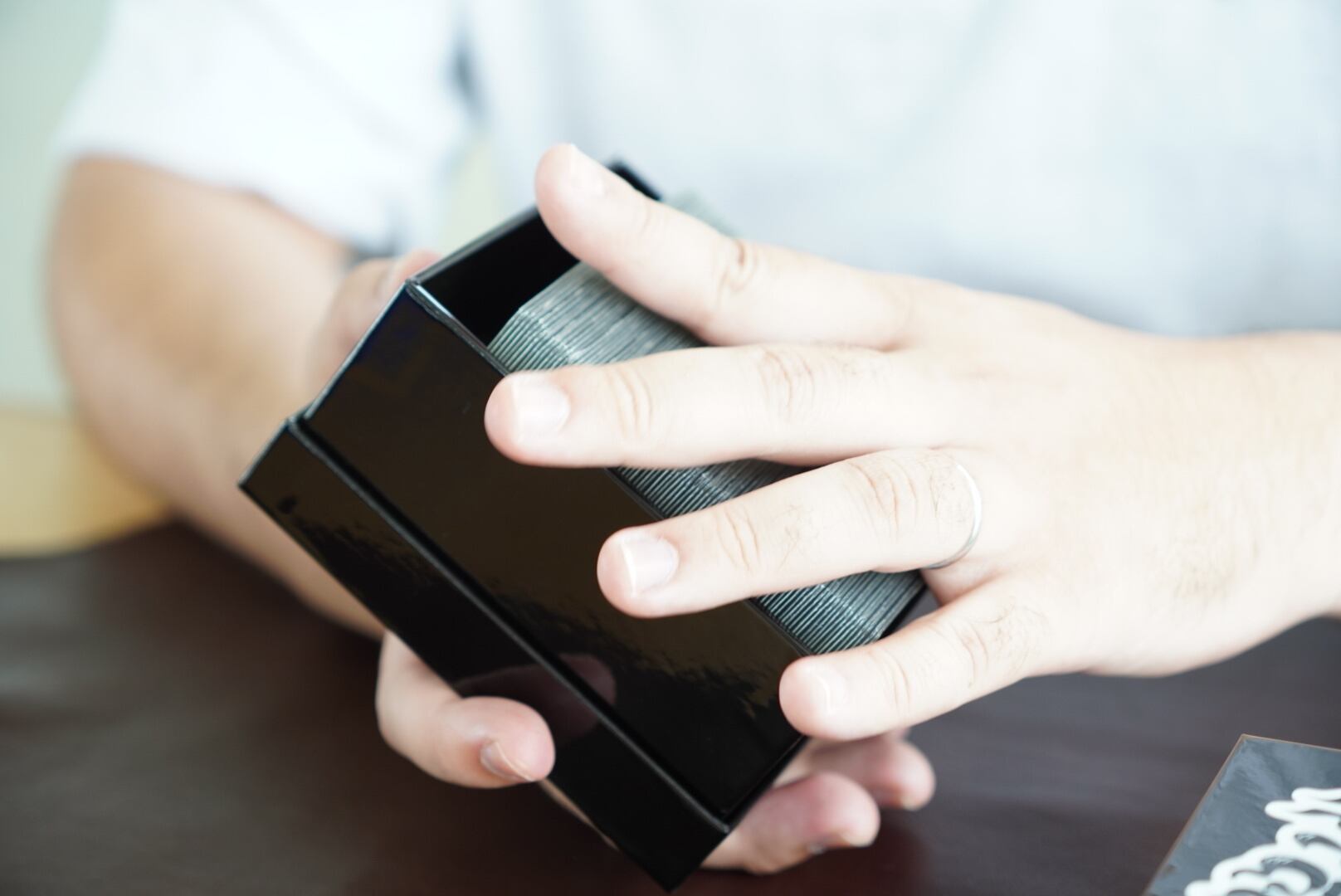 紙でできたとは思えない、ソリッドな貼り箱の堅牢感に、漆塗りによる耐水性をプラスし、デッキケースとしての機能性を確保。